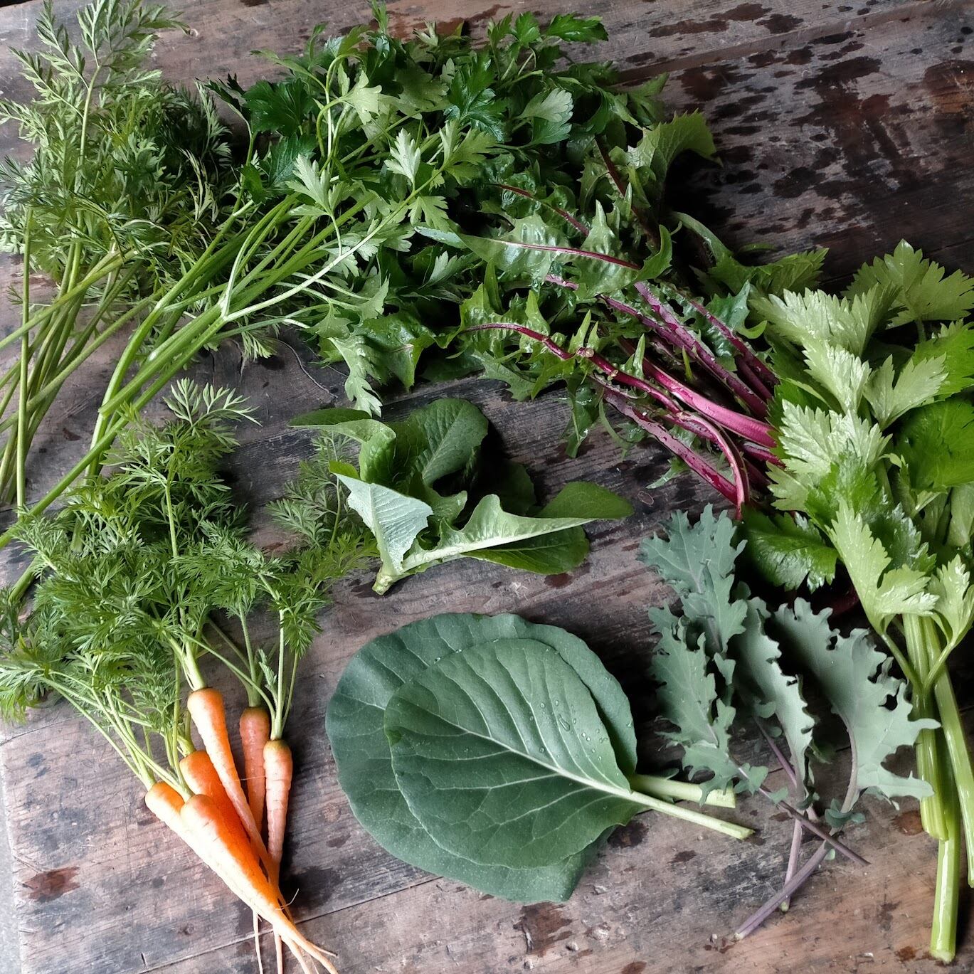 タンポポ・ニンジン・イタパセ・ブロッコリー・など4種類くらいの葉っぱを